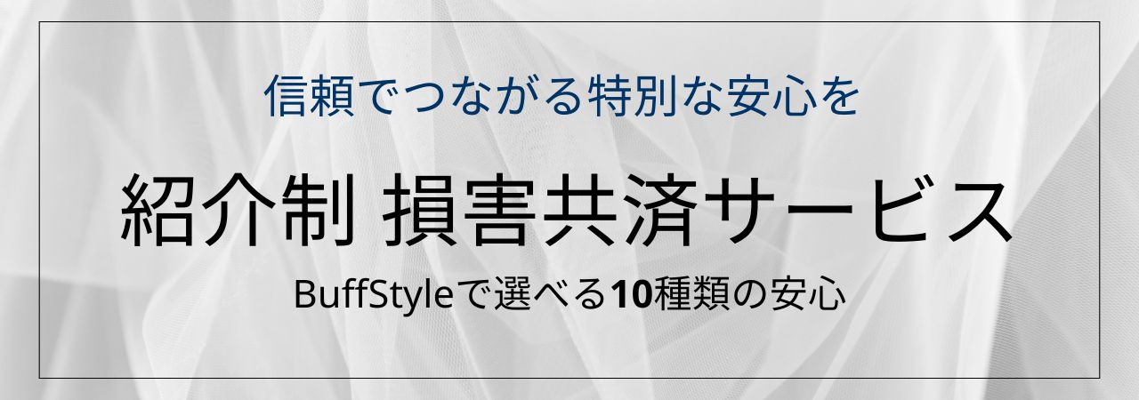 BuffStyle損害共済とは、10種類の選べるオリジナル損害共済です損害共済は、一般的な損害保険と比べて、より柔軟でカスタマイズされた補償を求める方に最適です。オリジナル損害共済は、マインクラブ会員限定サービスになりますので損害共済への加入をご検討の方はマインクラブ会員からの紹介が必要になります。